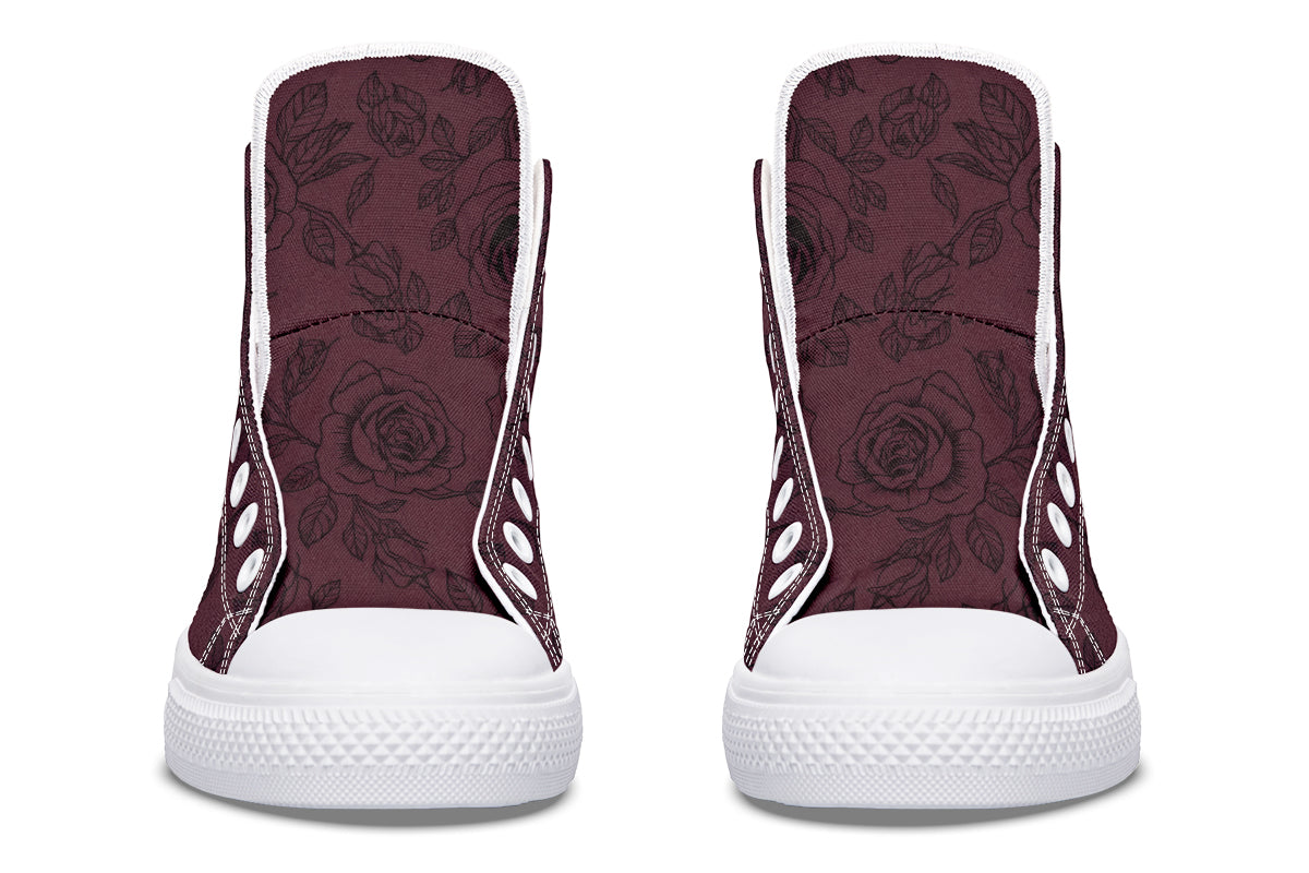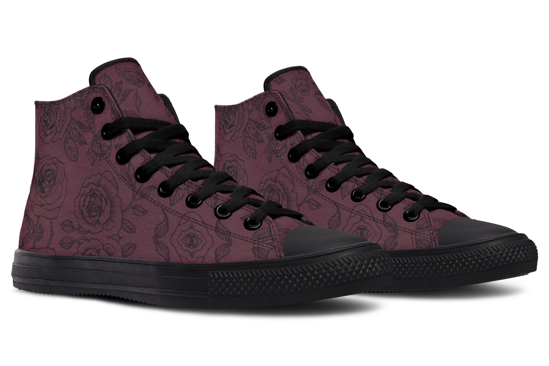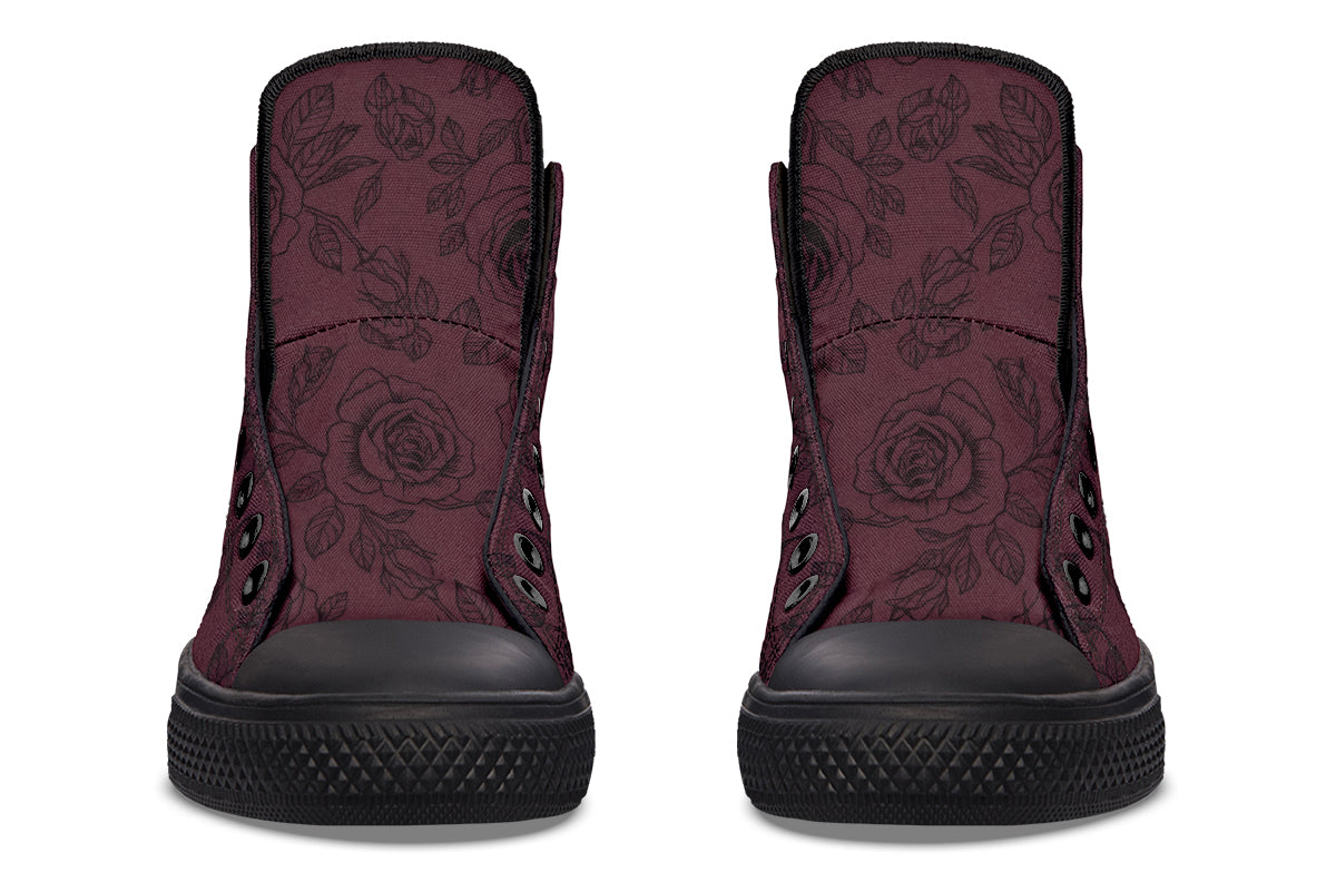 Step into the Rosa Aeterna High Tops—where gothic romance collides with a lush, crimson dreamscape. Each black-lined rose looks like it bloomed straight from the garden of a witch who’s really into heavy eyeliner (and hexes). For souls who prefer their petals a little on the dark side.