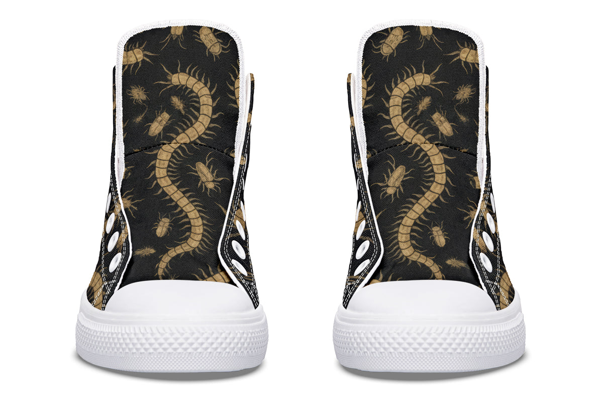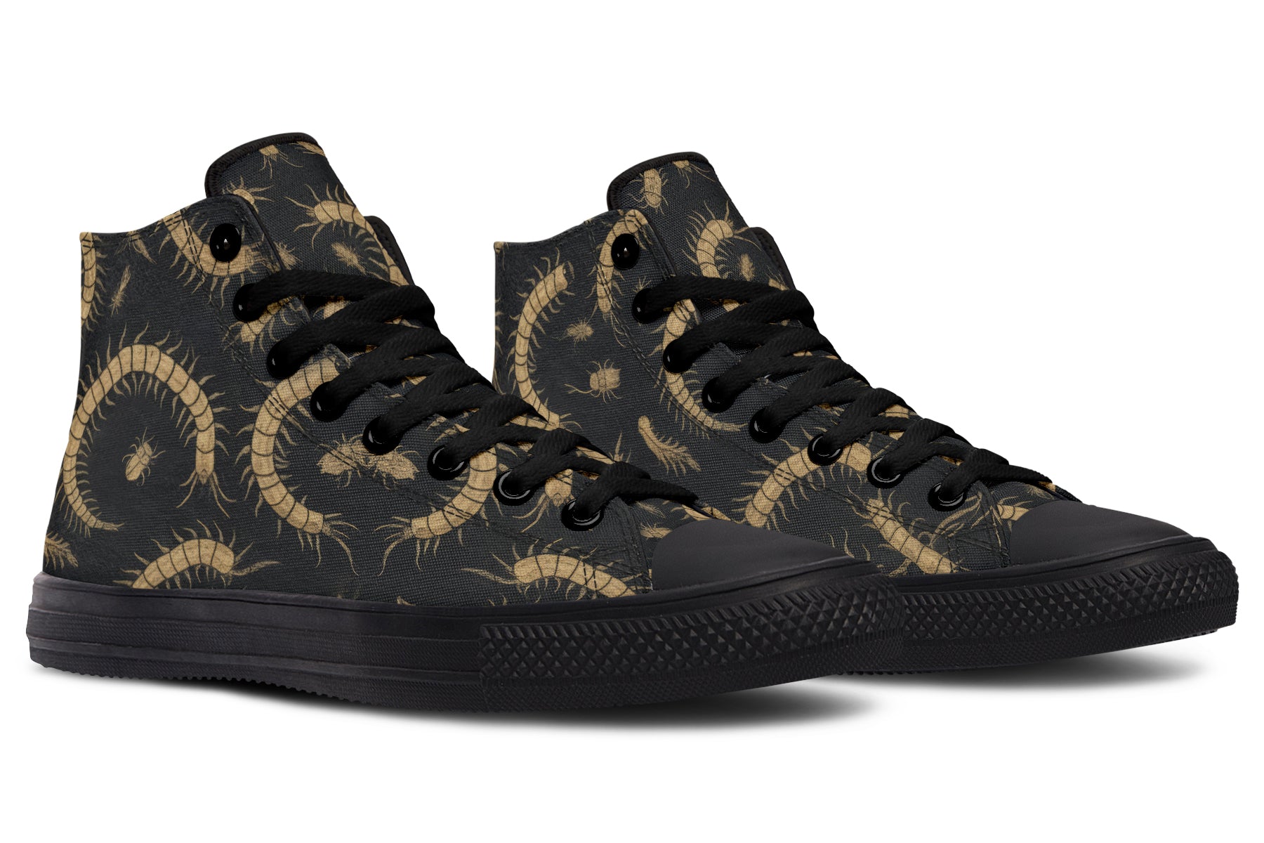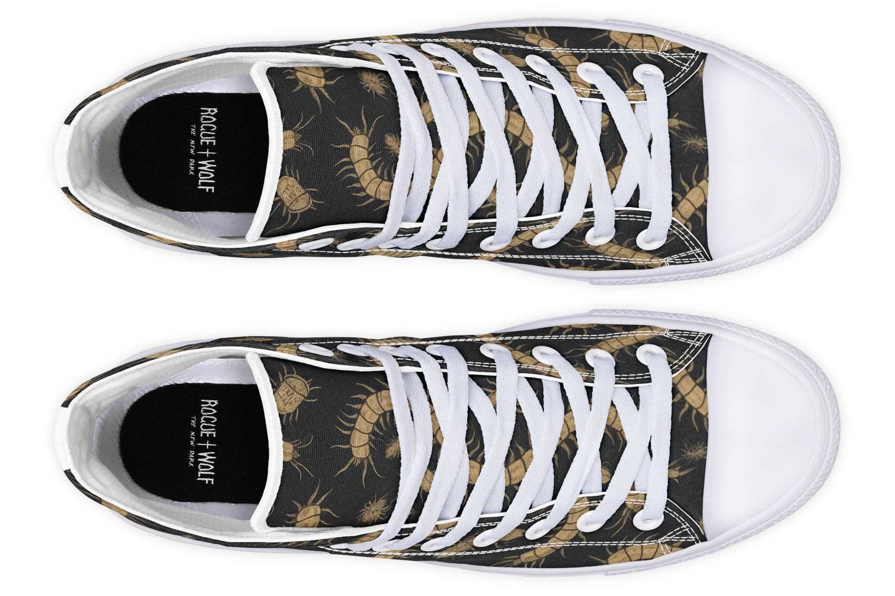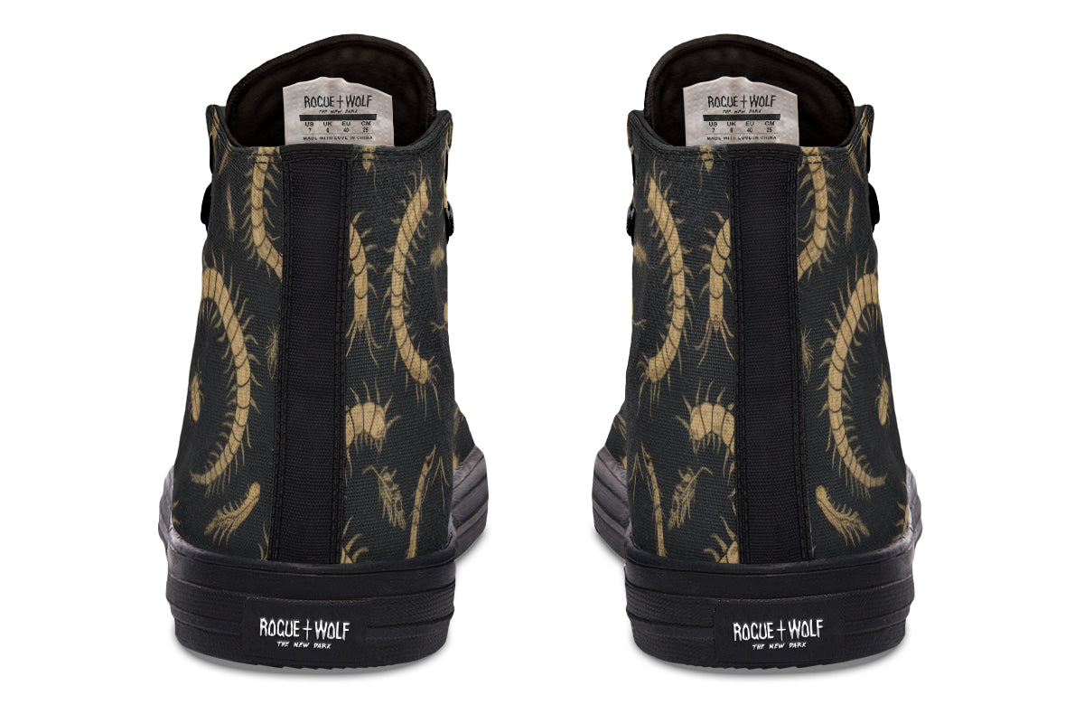 Step into The Crawling High Tops and let golden beetles and centipedes haunt your every move—it’s like swiping the margins of a forbidden entomology grimoire for your feet. Moody, gothic, and a bit unsettling… but honestly, what’s more Rogue + Wolf than that?