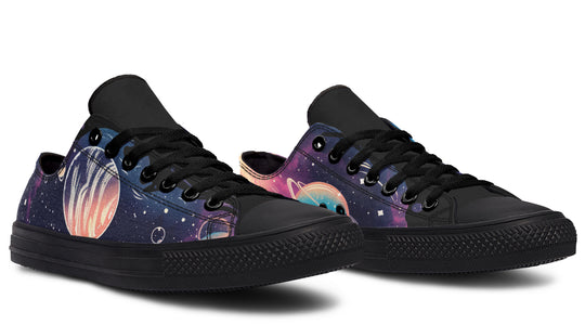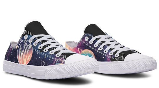 Dive into the mystical allure of our Nebula Low Tops, where bubbly planets wander through a nebula of purples and deep blues, amidst twinkling stars. These shoes are your cosmic passport, merging streetwear with the enchantment of the universe.