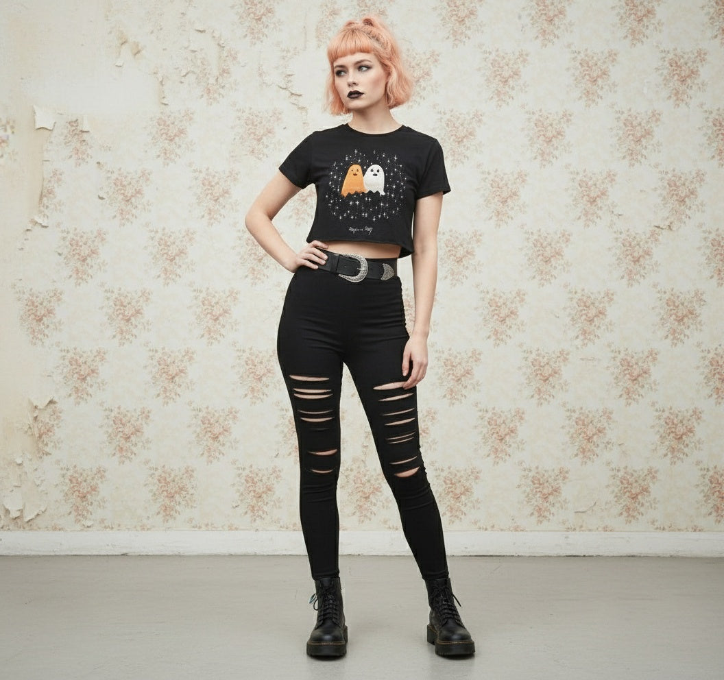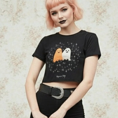 Enter the realm of dark academia with our Ghost Besties Short Sleeve Crop Top. It’s where the grunge aesthetic meets witchy whimsy, perfect for those who summon style with a side of spooky. Two ghostly pals, stitched in time, weave a tale of friendship that thrives in the moonlight’s embrace.