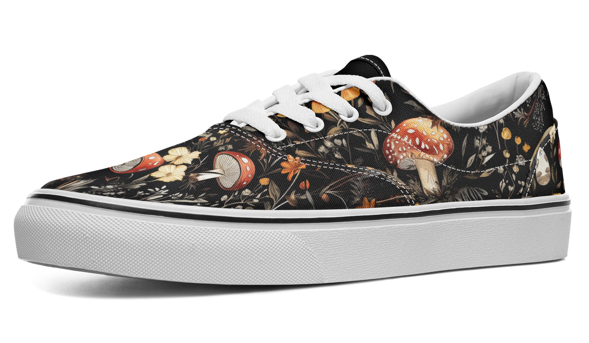 Woven with woodland witchery, these sneakers bloom with otherworldly fungi, whispered to hold ancient magic. Like ornaments on the darkest branch of your witchy tree of life, these kicks summon luck and mysticism with every step. Magic mushrooms without the side effects—sadly.