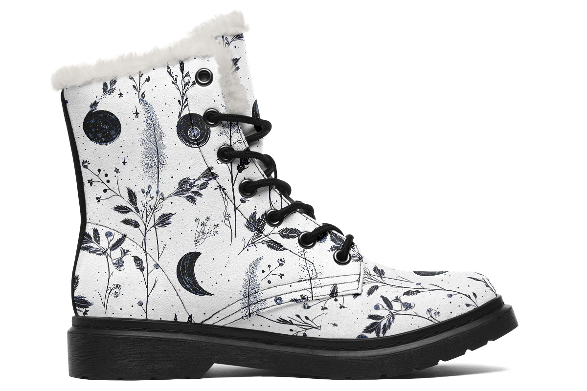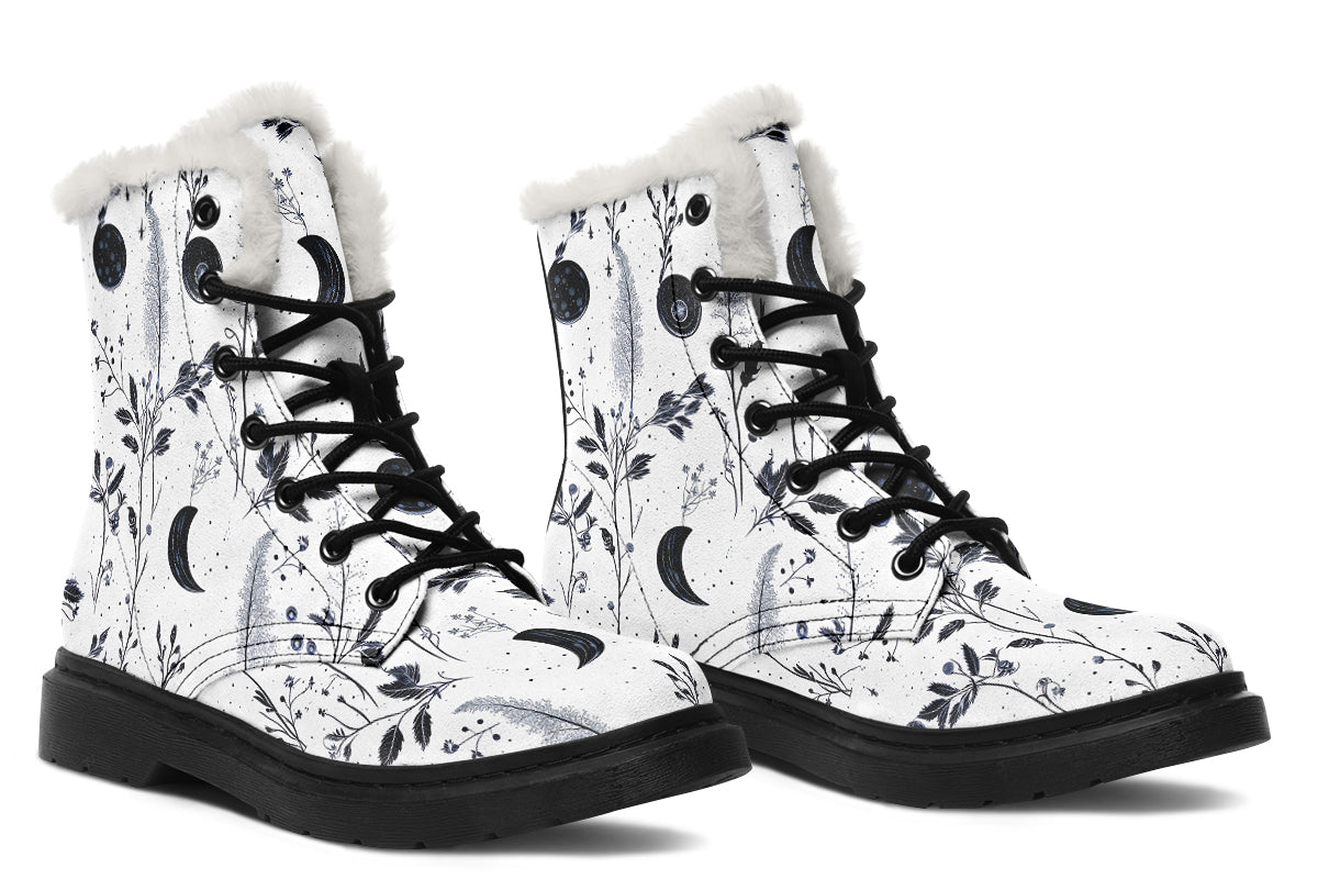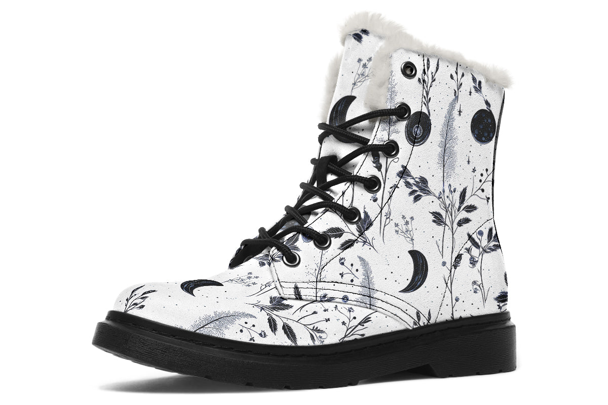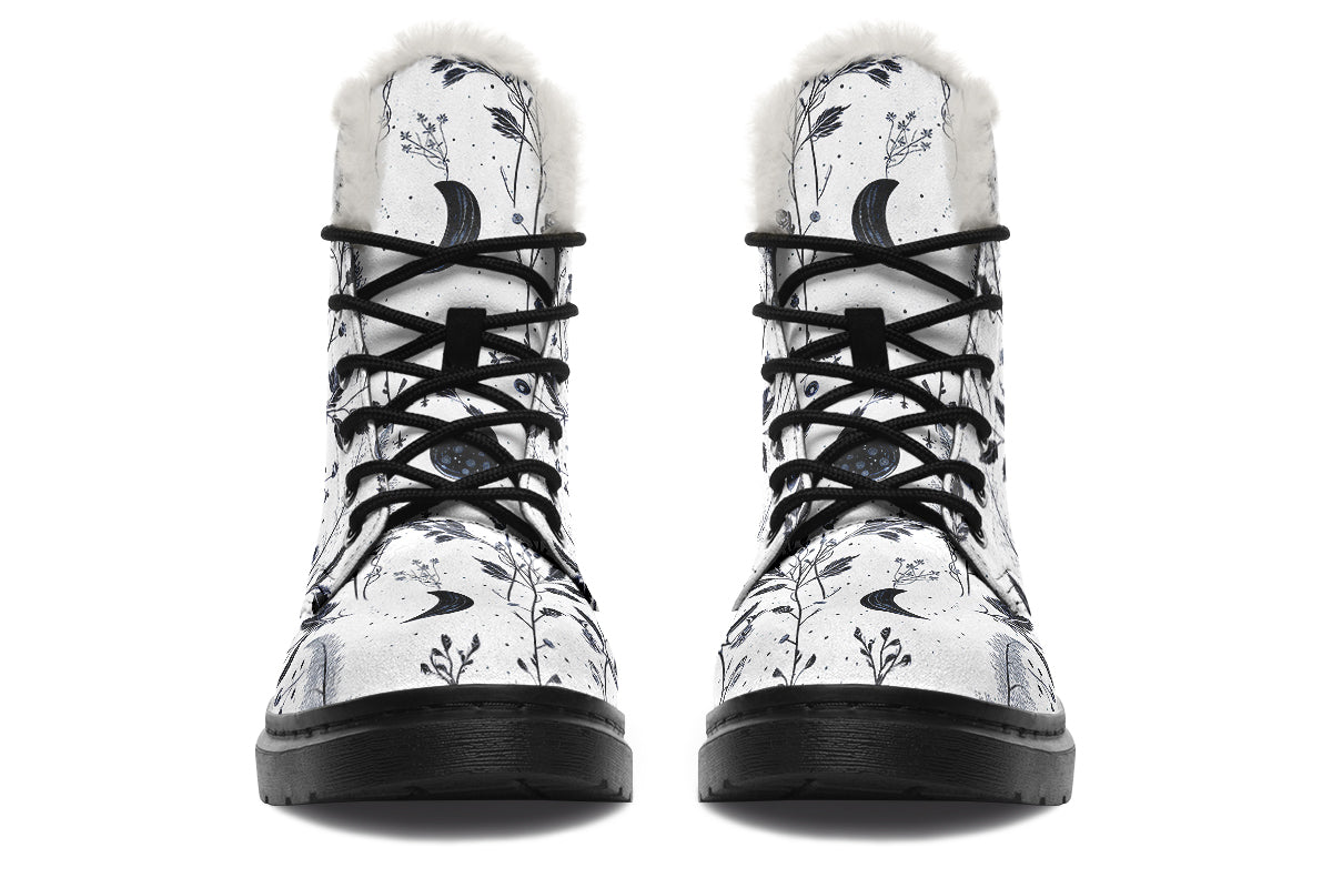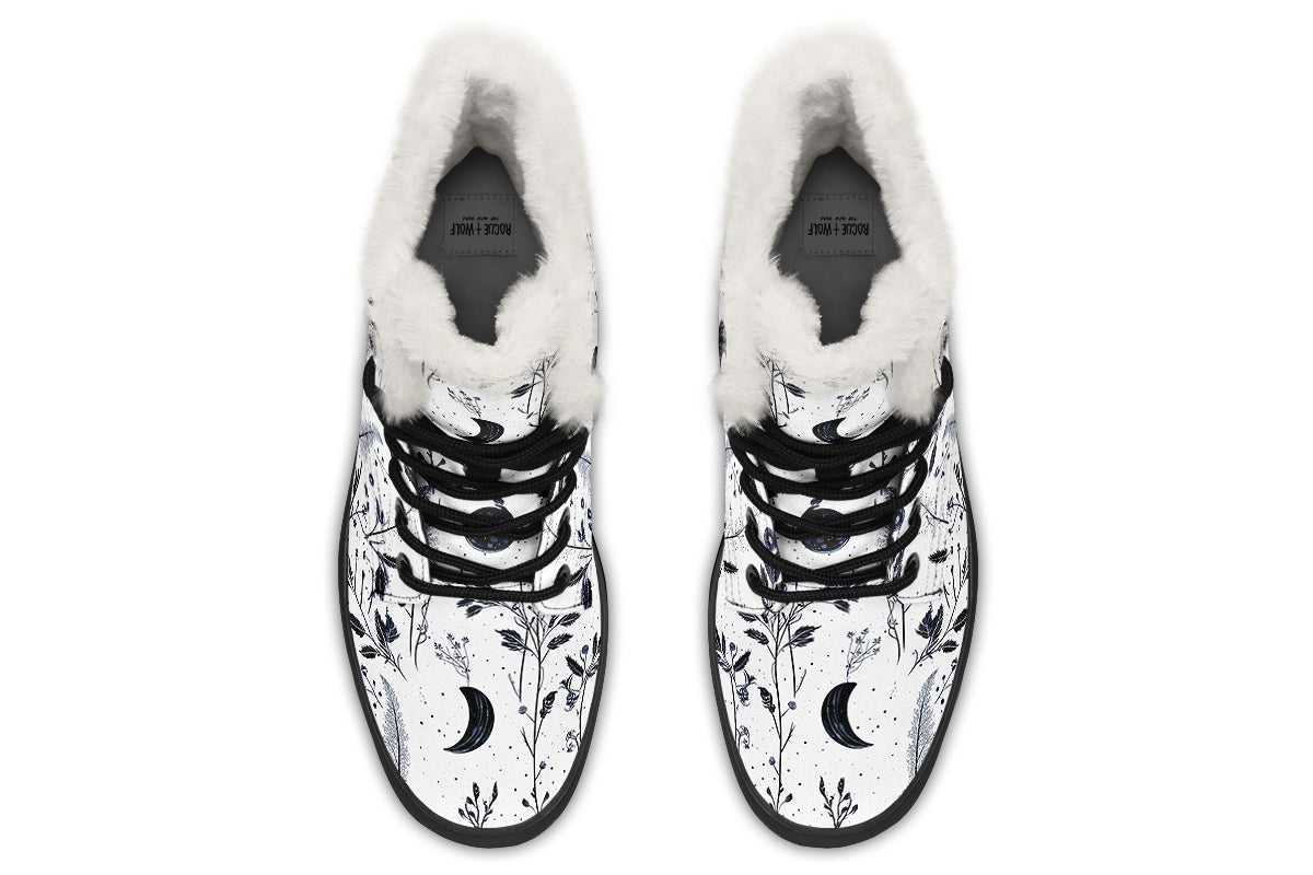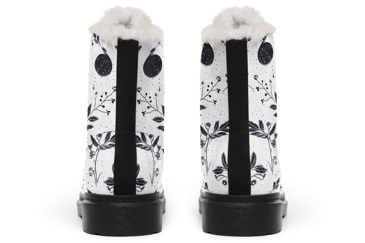 Chill in the embrace of moonlit magic — our White Twilight Garden Winter Boots channel frosty nights and occult botanica in one dreamy step.
