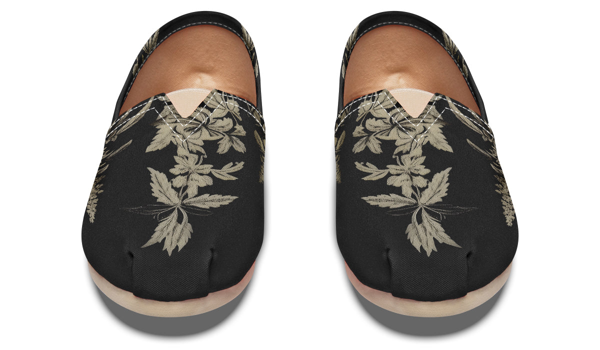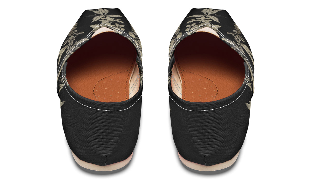 Flirt with the shadows in our Black Night Ivy Espadrilles—botanical daydreams dipped in midnight, because who says the garden can’t haunt you back?