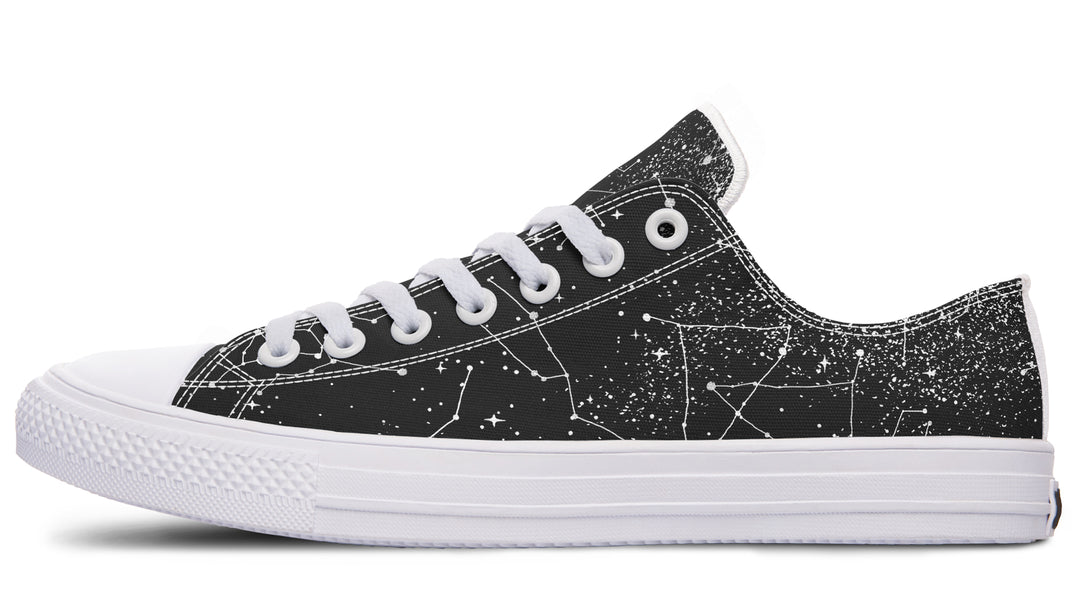 Adorn your feet with the night sky! The Constellation Low Tops feature a dazzling print of constellations and galaxy splatters, making every step a journey across the universe. Ideal for the cosmically curious and the fashion-forward stargazers, these shoes bring the heavens down to Earth in style.
