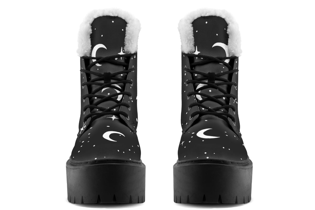 Summon lunar energy with every step—MoonDust Platform Winter Boots bring the midnight sky to your stride.