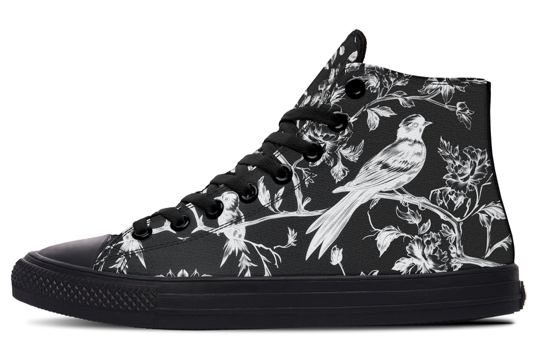 Hauntingly beautiful, our Black Aviary High Tops glide between shadows and moonlit mystique.