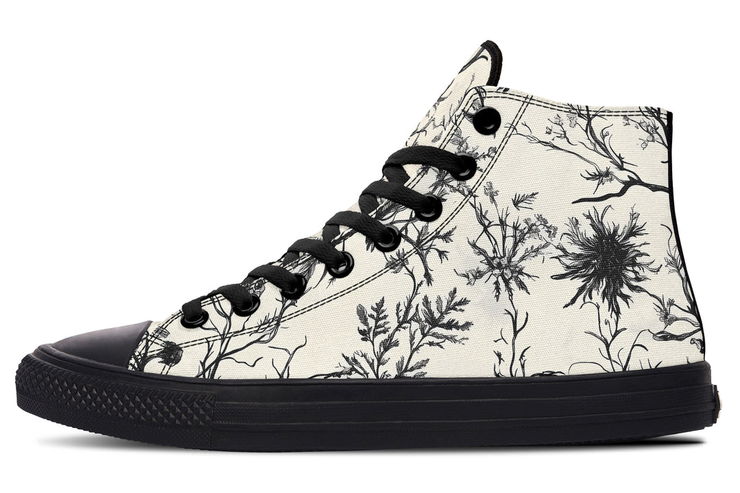 Step into the wild unknown with Bramble High Tops—where gothic rebellion tangles with haunting beauty.