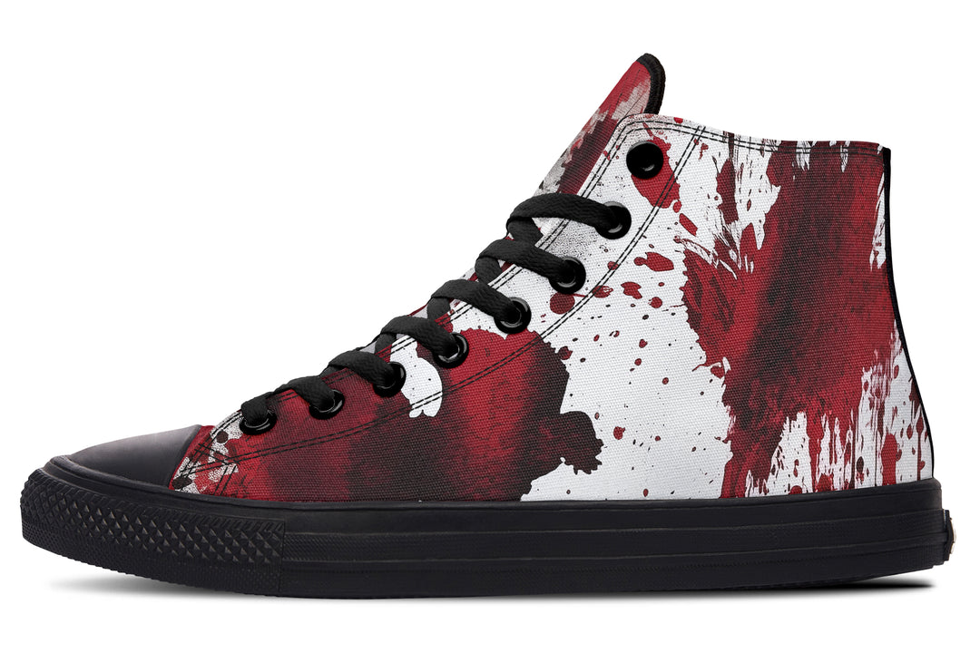 Chaos reigns with the Happy Accidents High Tops – where every blood-red splatter is a love letter to rebellion.