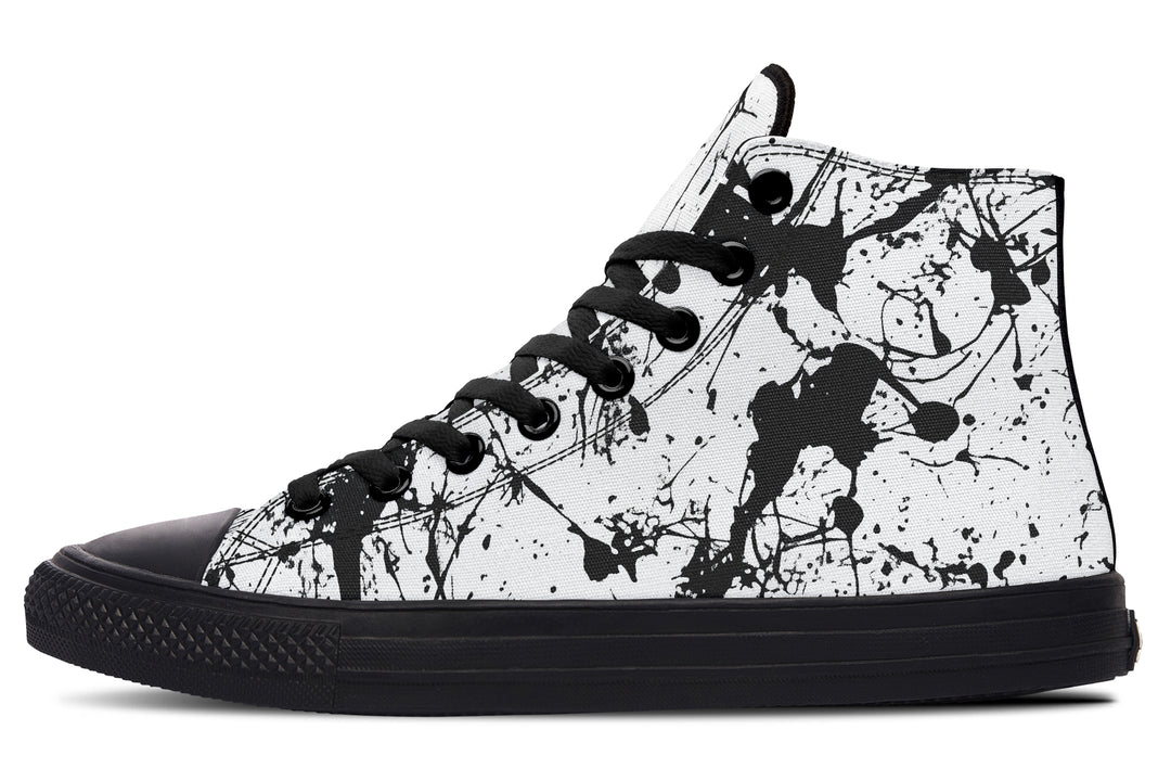 Summon chaos on your kicks with the Inkstorm High Tops—where monochrome magic detonates in every step.
