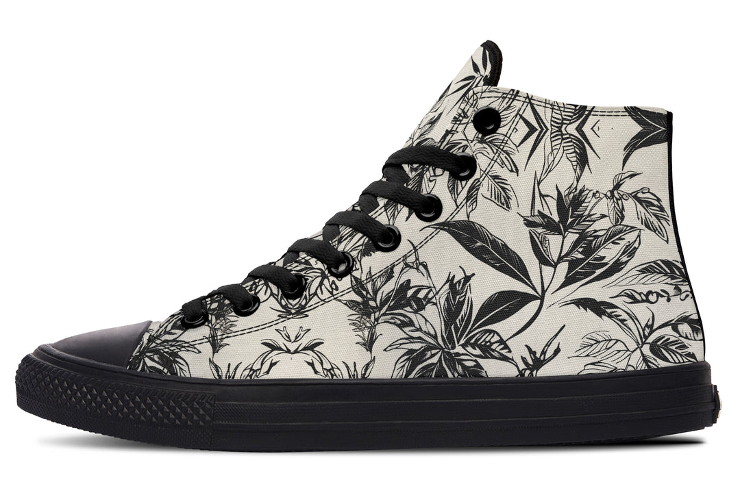 Monochrome entwined vines twist across these Tangle High Tops, pulling you deeper into the wild side of The Coven. Bold, black and white, totally unafraid of lurking forest spirits (or nosy neighbors). Wear with confidence—spell not included.