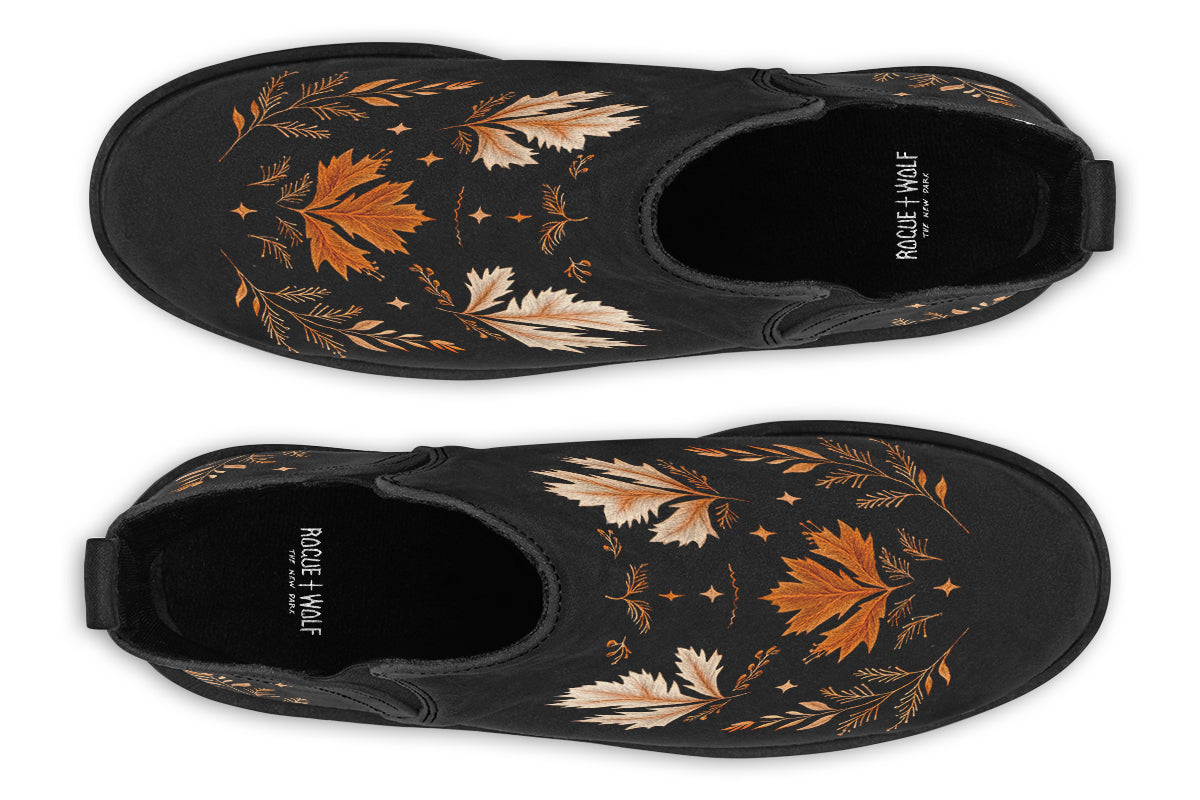 Fall under the spell of Autumnalis: Chelsea Boots kissed by copper leaves and golden gothic nostalgia.