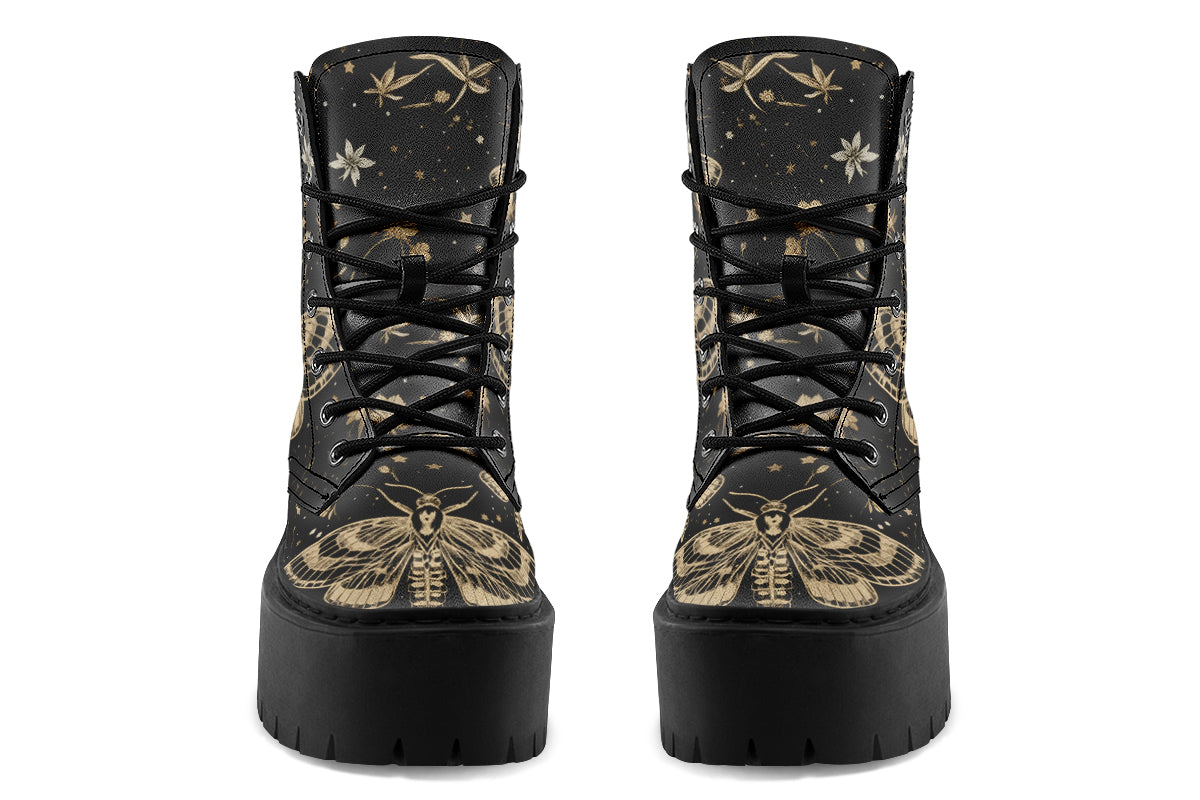 Step into the Moth Arcana Platform Boots and become a midnight legend—where gothic enchantment meets entomologist chic.
