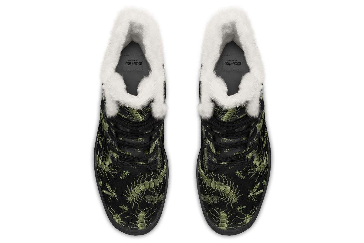 Embrace your inner midnight entomologist with the Centipeda Tenebris Winter Boots—creepy-crawly vibes without the bug spray.