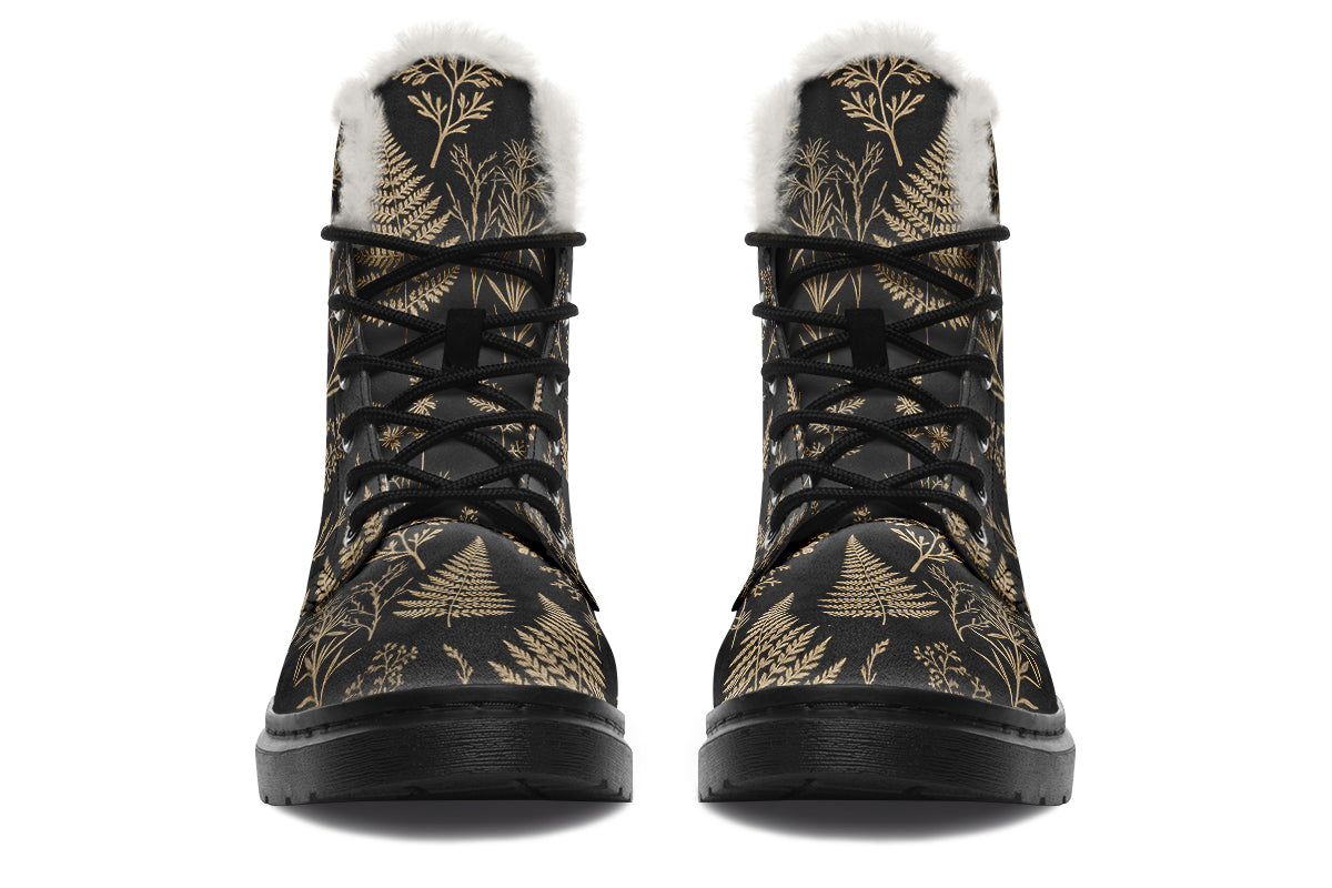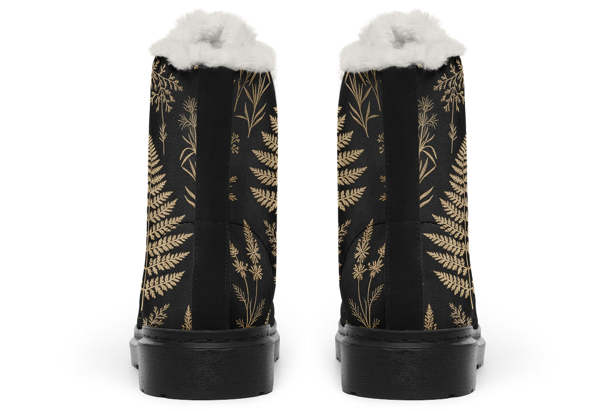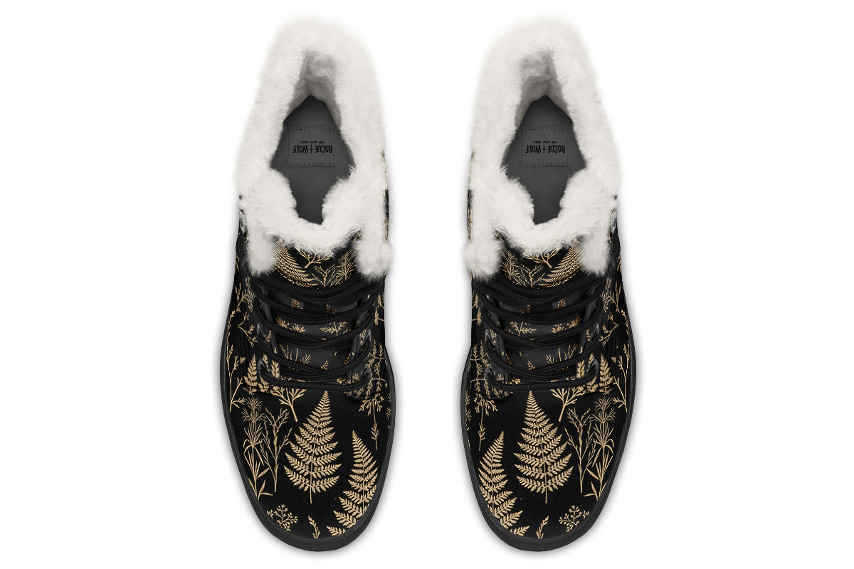 Watch golden ferns and wild botanicals come out to play, scattered across black winter boots like enchanted relics from a secret witch’s herbarium. These are boots for coven dwellers who like their nature spooky and their soles as dark as their humour.