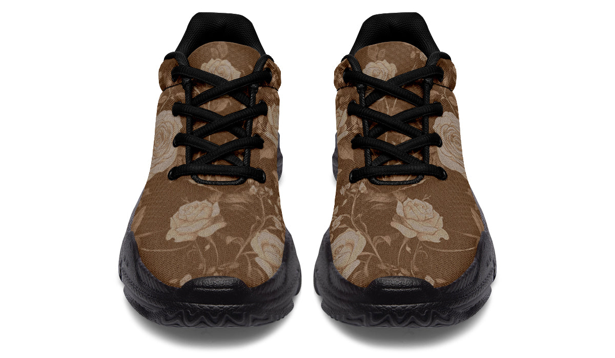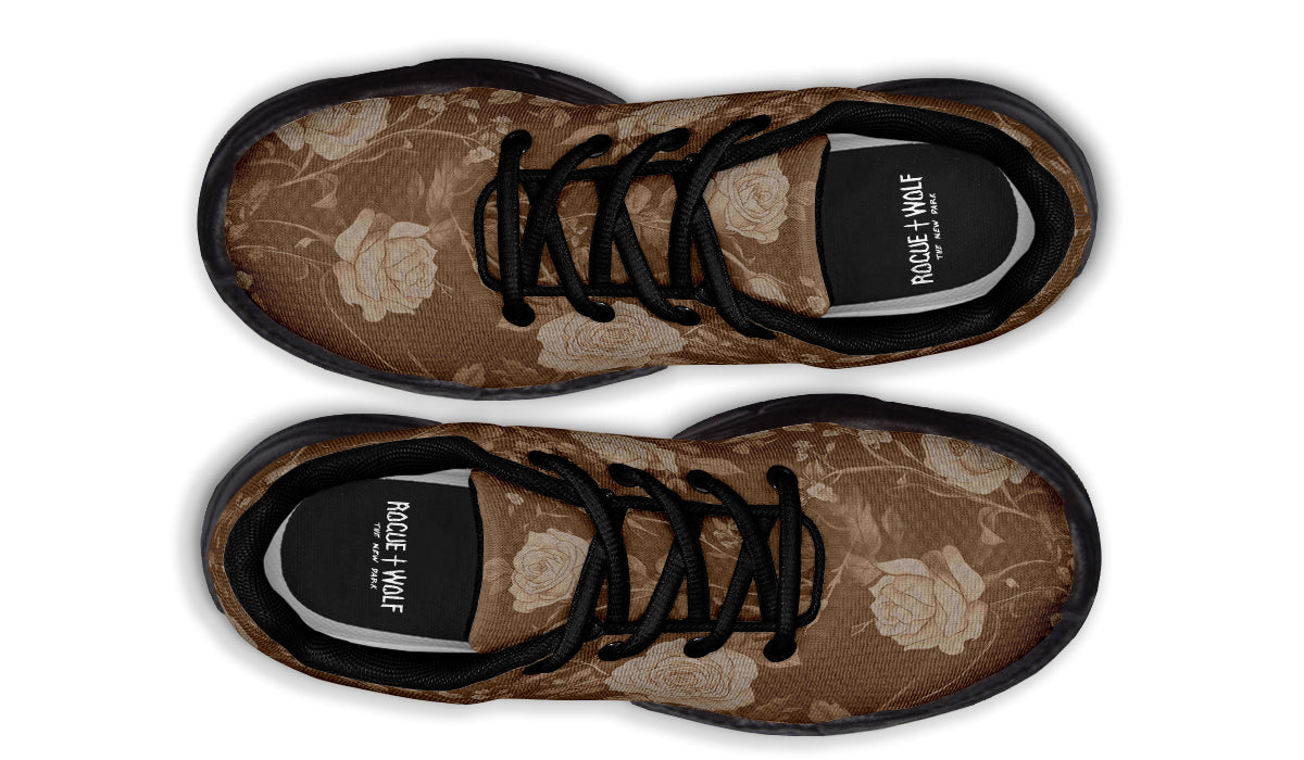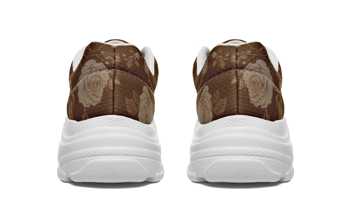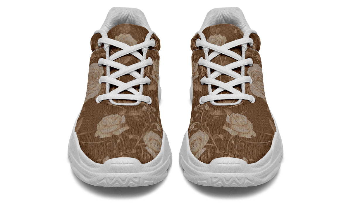 Sink your claws into the Hazel Rose Romance Chunky Sneakers—where soft ivory roses coil through gothic vines on a rich, coffee-toned world. Serving earthy warmth and subtle, witchy elegance, they’re basically the footwear equivalent of tarot cards at dusk.