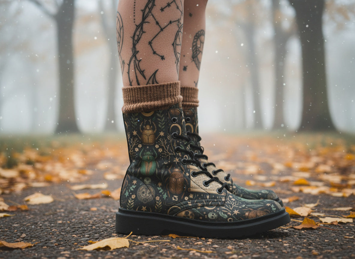 Step into shadows with Scarabaeus Boots—where ancient magic meets alt-goth swagger.
