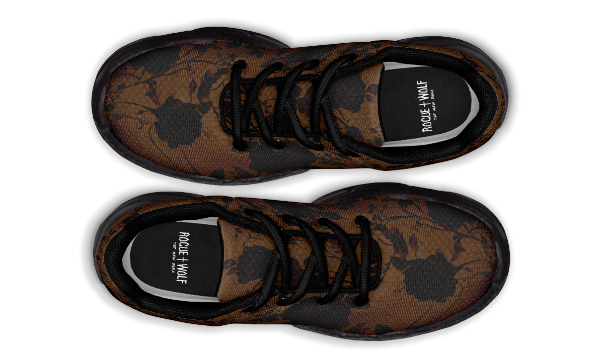 Step into the realm of dark romance with the Sepia Rose Romance Chunky Sneakers—where gothic nostalgia meets shadowy blooms.