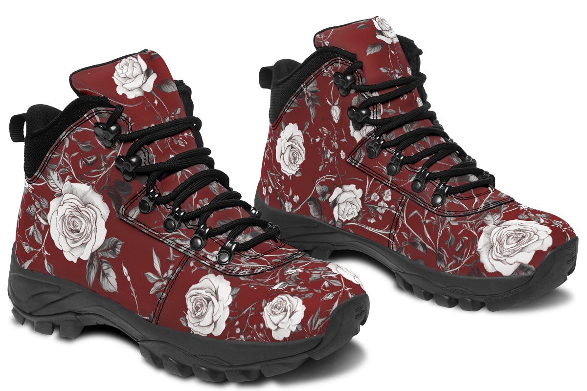 Dark romance blooms with every step in the Red Rose Romance Outdoor Boots—where gothic charm meets wild wanderlust.