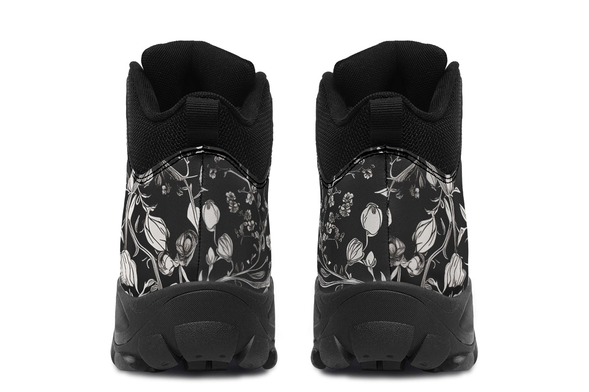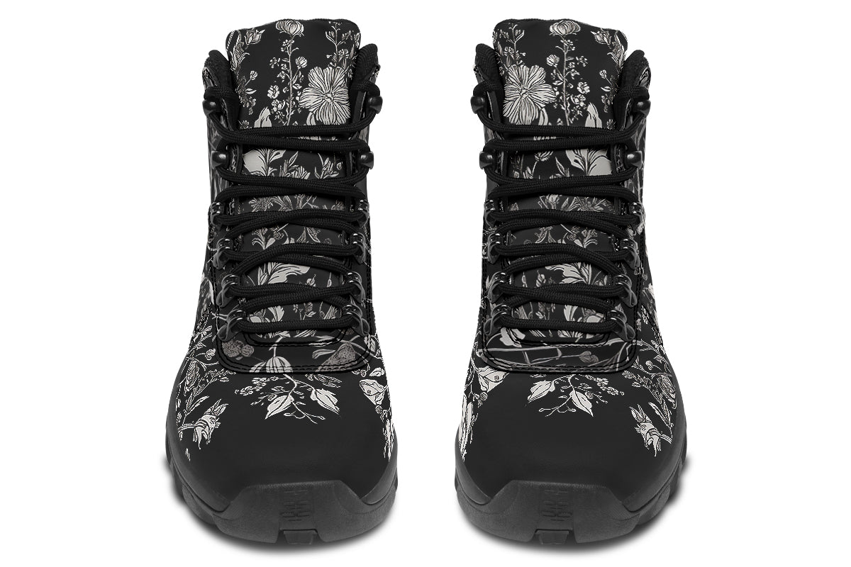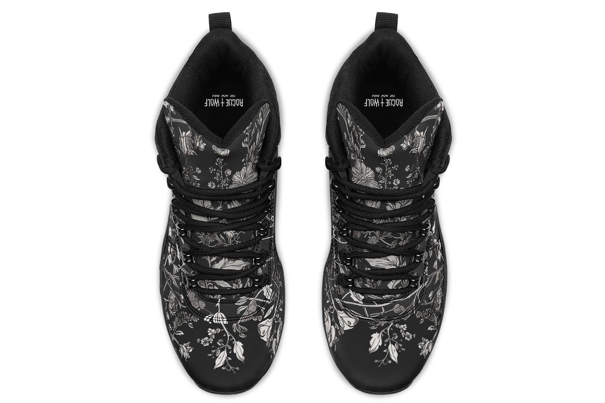 Step into the midnight garden with Noir Bouquet Outdoor Boots—where classic goth meets wildflower witchcraft.