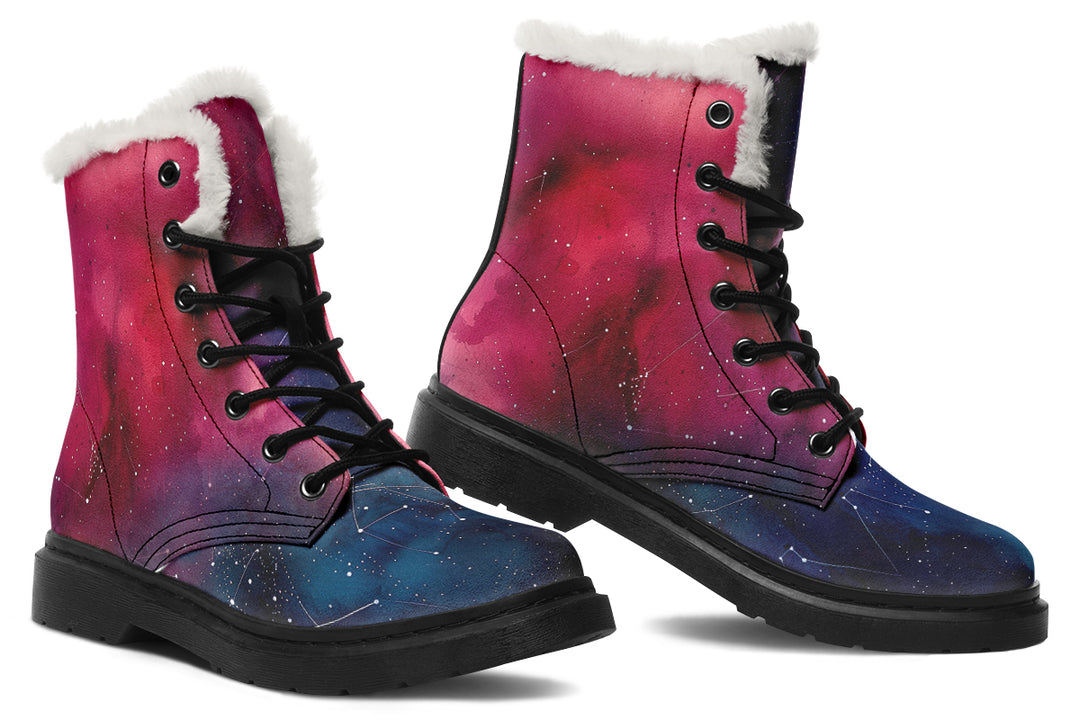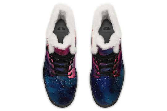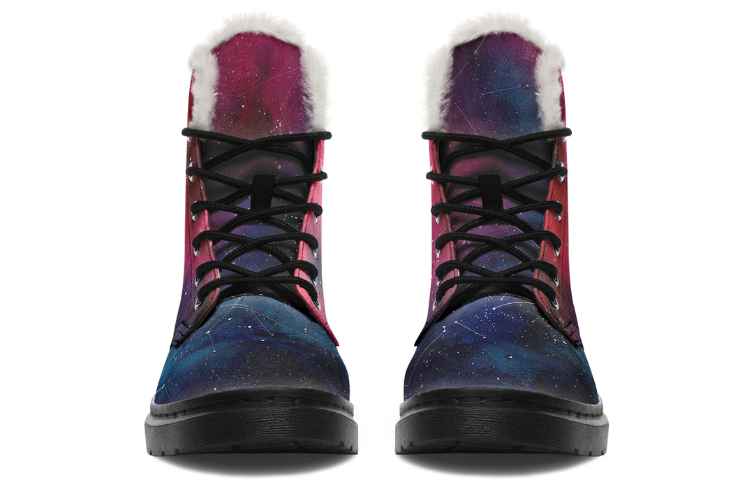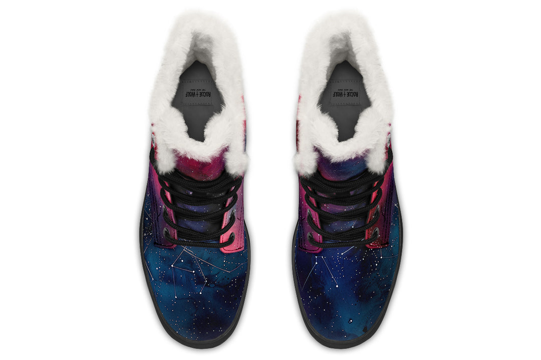 As the sun dips below the horizon, our Twilight Winter Boots capture the celestial splendor of twilight skies in shifting hues of deep red and night blue. Get ready to tread the mystical path with stars and constellations underfoot!