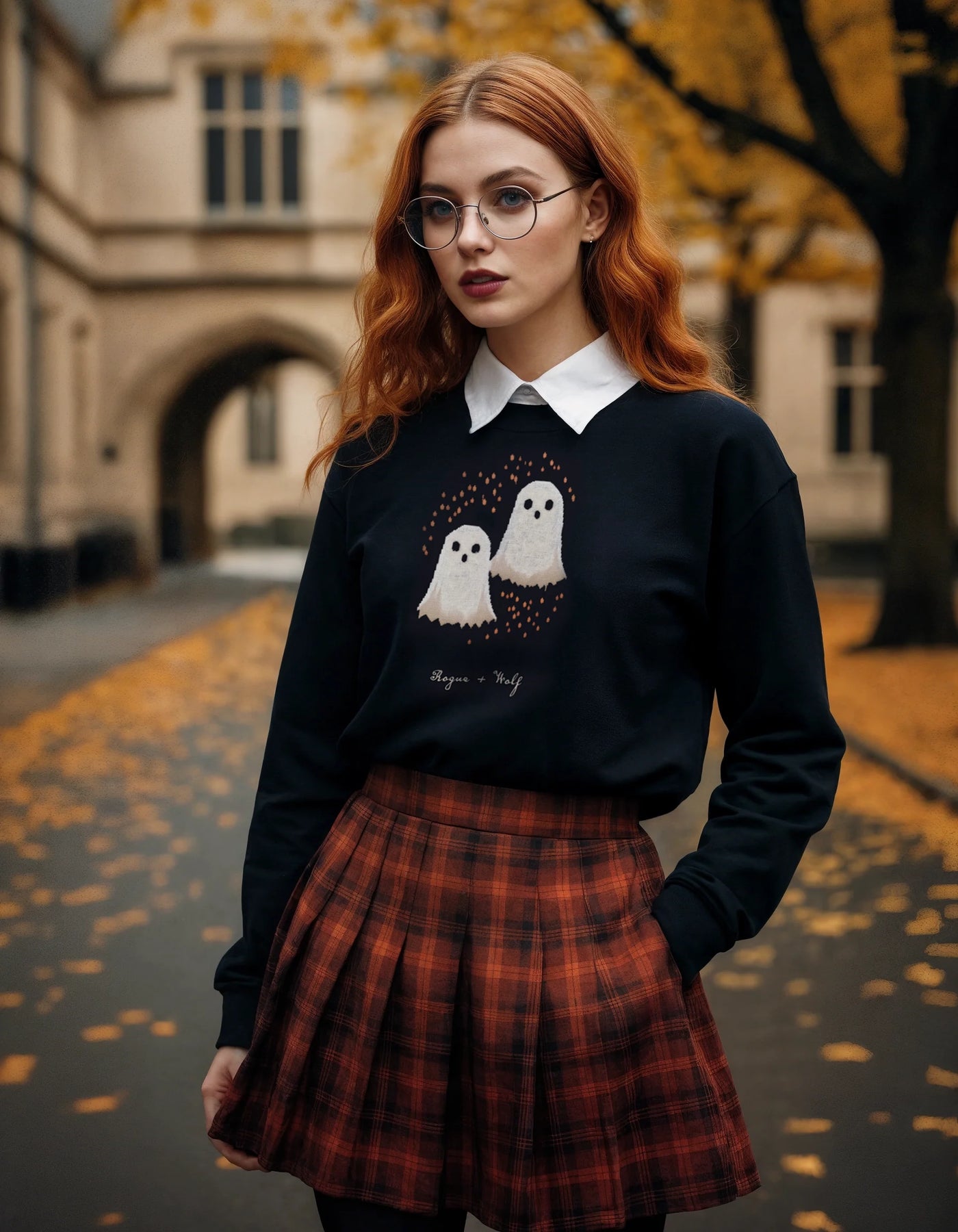 Wrap yourself in the enigma of the Boo Long Sleeve Tee, where playfully ethereal ghosts dance on a celestial star-filled backdrop. This nugoth staple whispers tales of gothic allure and witchy vibrations, elevating your wardrobe into the realms of dark academia with a spectral twist.