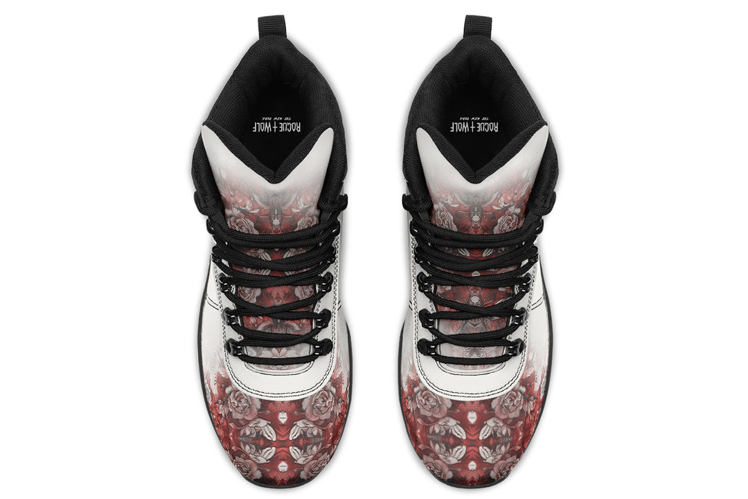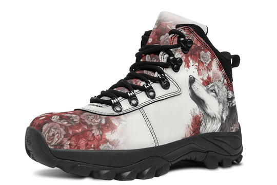 Unleash your inner wild spirit with the Crimson Wolf Outdoor Boots, where gothic style meets the enchanting wilderness. Majestic wolves take center stage amidst a swirl of crimson leaves and delicate pale roses, weaving a tapestry of mystic allure. Embrace the ethereal dance between nature’s untamed ferocity and serene beauty.