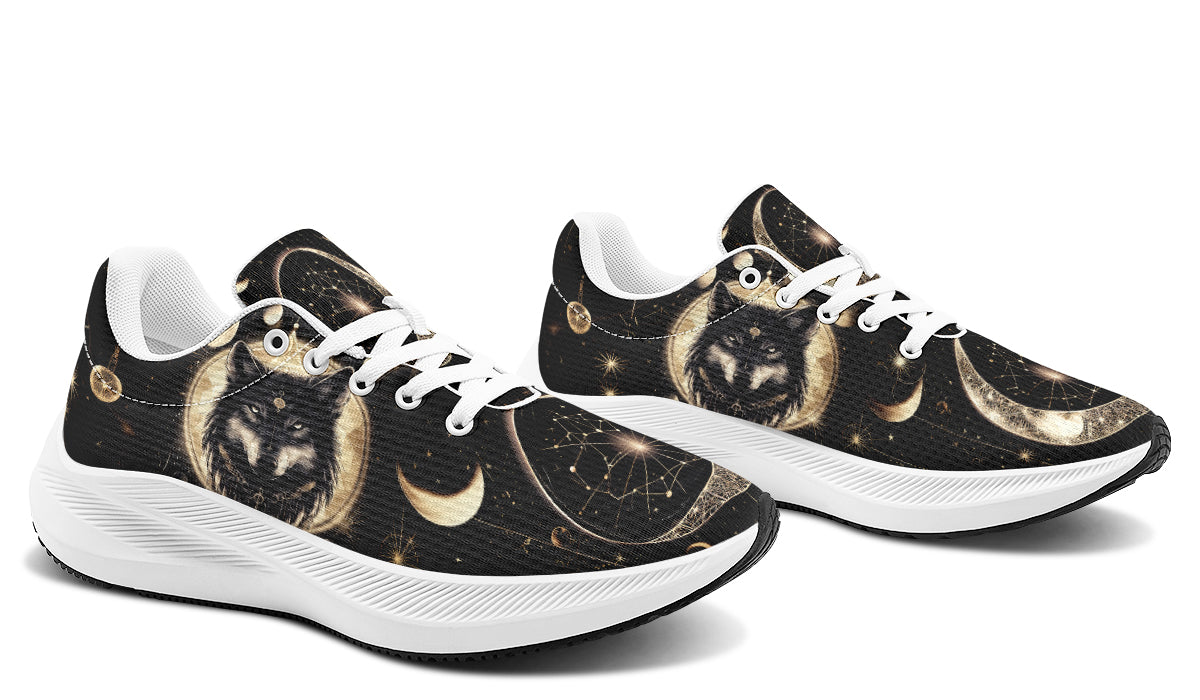 These Guardian Wolf Sneakers unleash your inner shadow wolf, with celestial symbols swirling through every step. Feeling hexed by basic footwear? Summon a little cosmic power and let those glowing eyes keep the mundane vibes at bay.