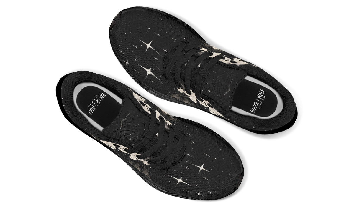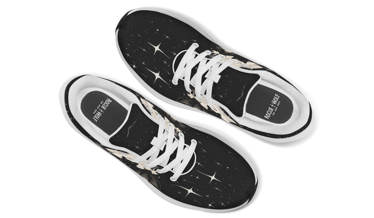 Get ready to haunt the streets as a shadowy black bat takes flight across swirling clouds, all aglow beneath a witchy lunar gaze—seriously, even werewolves want these kicks! Drip in nocturnal, gothic vibes as the star-studded sky (and your new sneakers) turn your daily wander into a moonlit ritual with The Coven. Go on, let your feet channel #MoonWitch realness—no broomstick required.