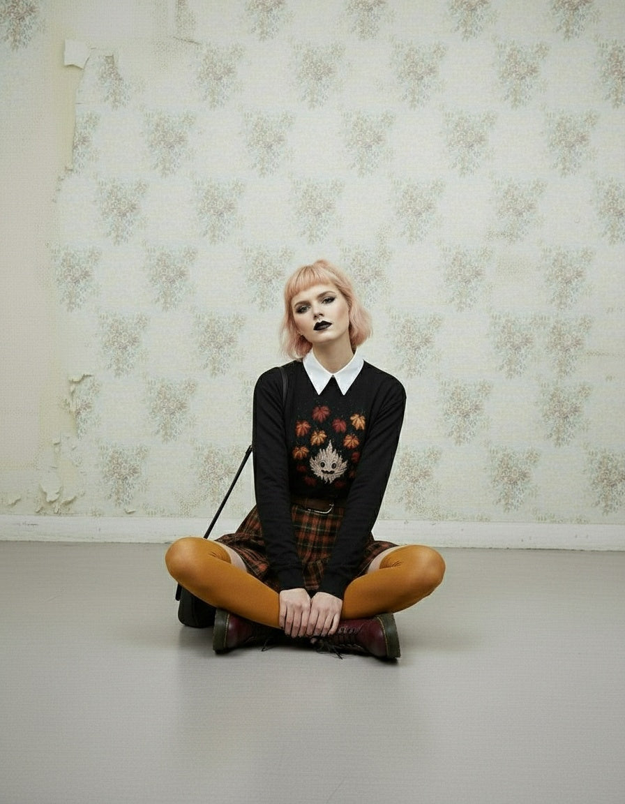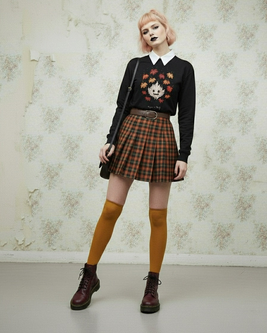 Step into the season’s mystery with our Maple Ghosty Long Sleeve Tee. Wrapped in the charm of dark academia style, this piece summons the essence of crisp autumn days, with a playful ghost that spirits through a cluster of maple leaves. This tee is perfect for the witch or warlock looking to cast a cozy spell on their wardrobe.