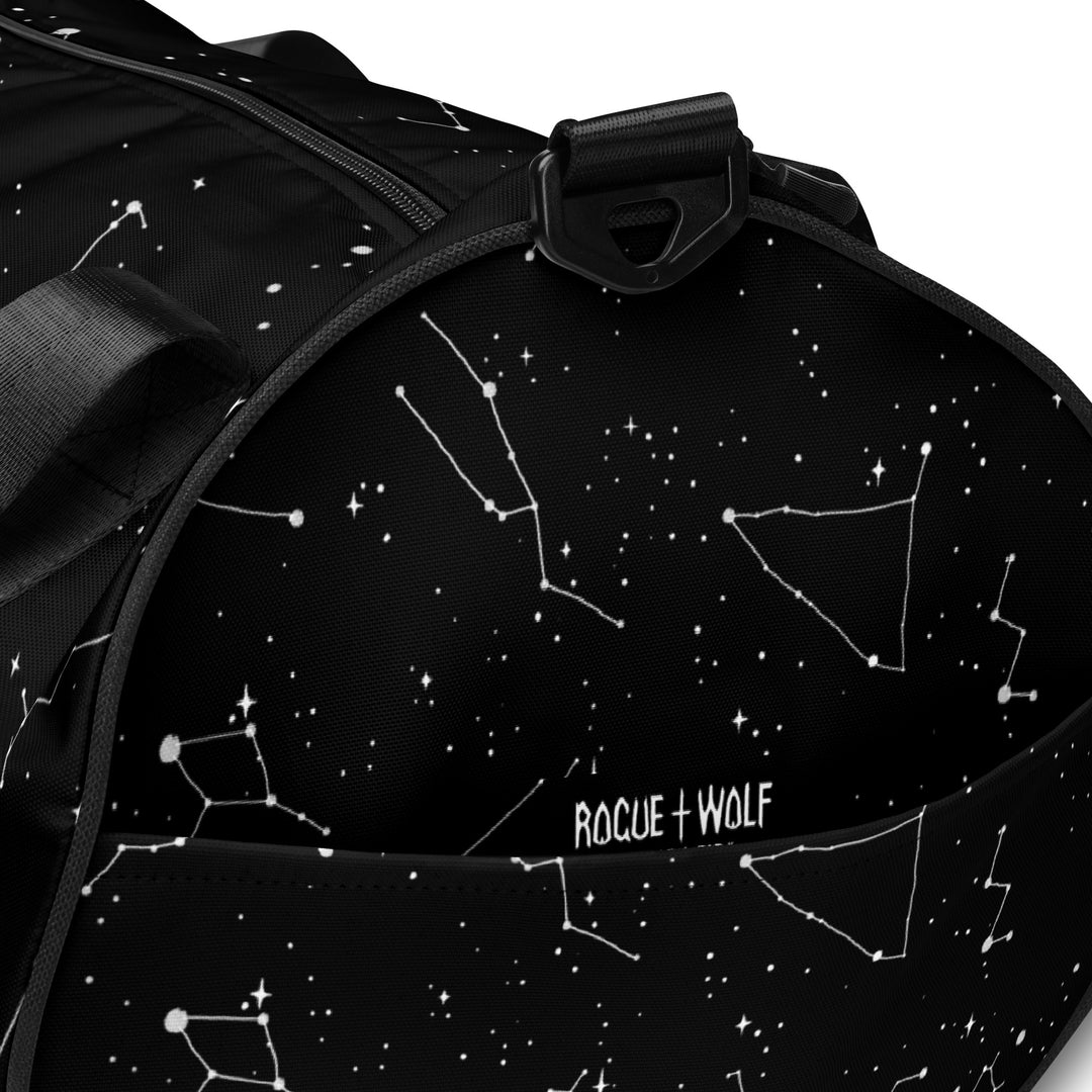 Dive into the unknown with the Purr Nebula Gym Bag, where goth goes to the gym in a celestial style of cats, moons, and stars. Perfect for those who find beauty in the night sky and strength in the darkness, it’s a journey of fitness and witchcraft woven into one. Get ready to have your gym essentials enshrouded in mystery and your style statement boldly declared. No matter where the day takes you, this bag ensures your aesthetic is as captivating as a midnight spell.