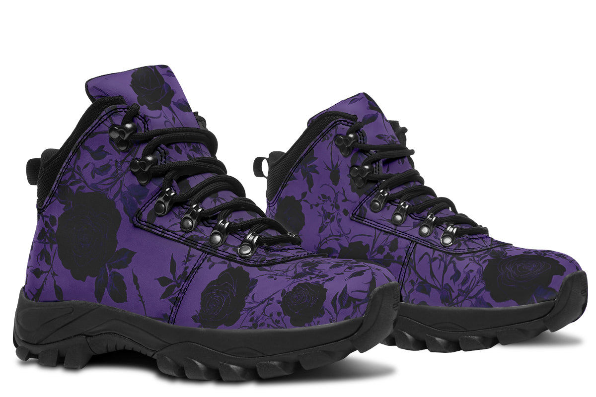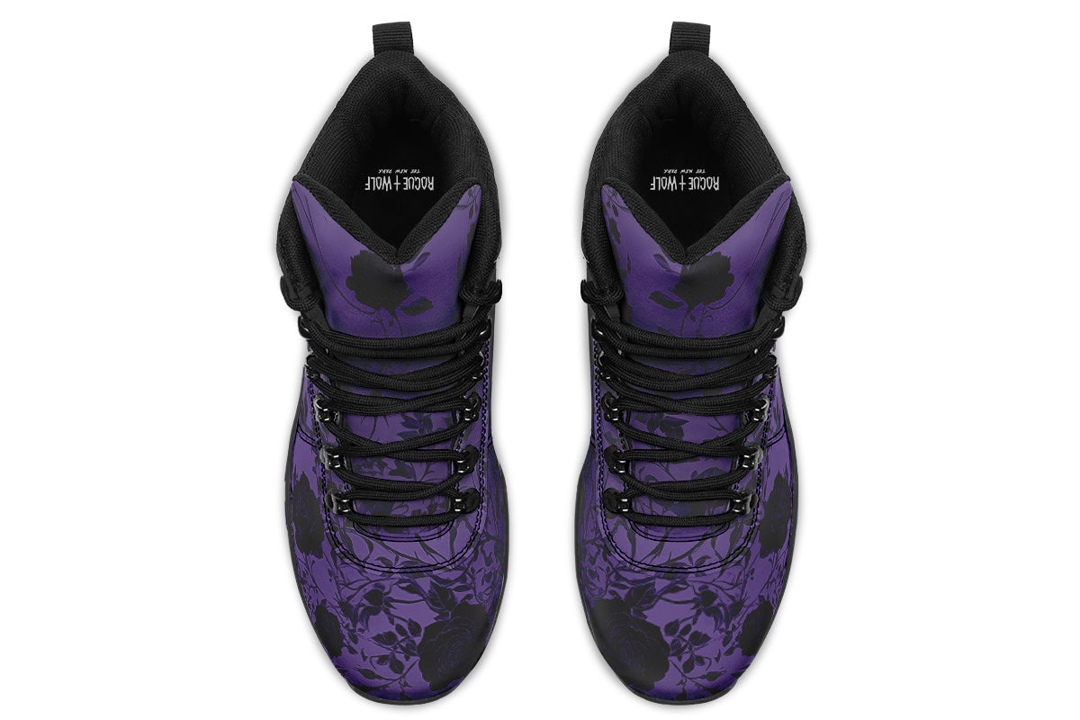 Step into a gothic fairy tale with our Amethyst Rose Romance Outdoor Boots—where black roses whisper secrets on a lush, amethyst night.