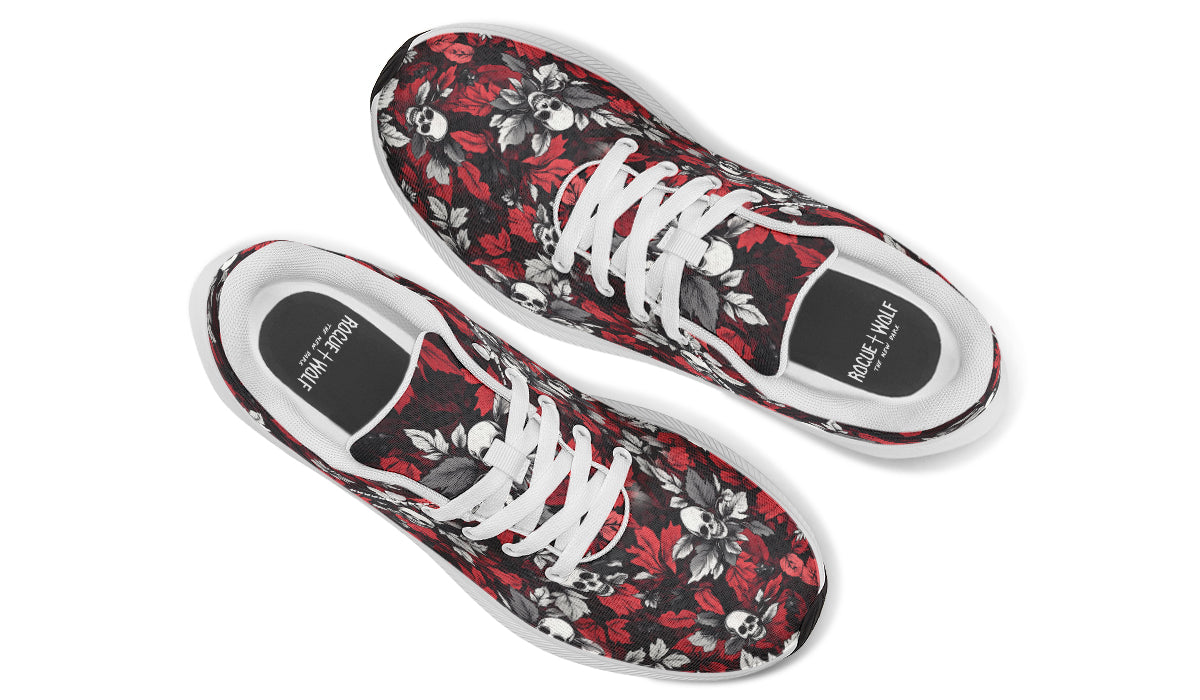 Step into the shadows with BloodLeaf Sneakers—where blood red leaves and grinning skulls dance beneath your feet.