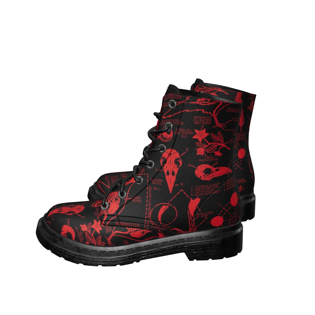 Introducing the Blood Raven Study Boots: A portal to your mystical sanctuary. With crimson ravens and celestial symbols, these boots exude a blend of gothic allure and arcane wonder, hinting at secrets only The Coven knows. Where dark tales meet stylish footsteps. Are you in, or are you raven mad?