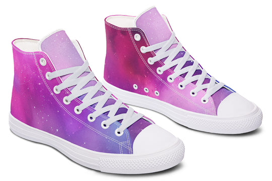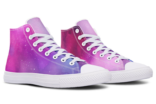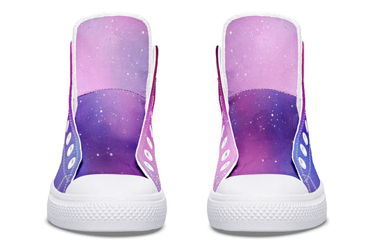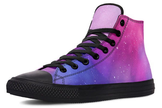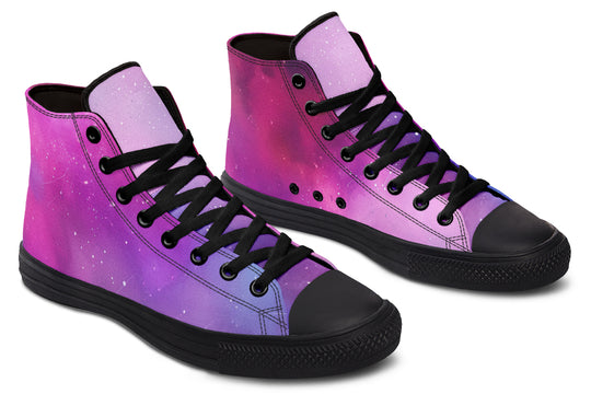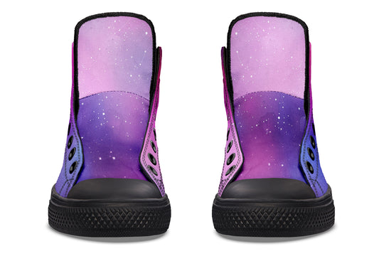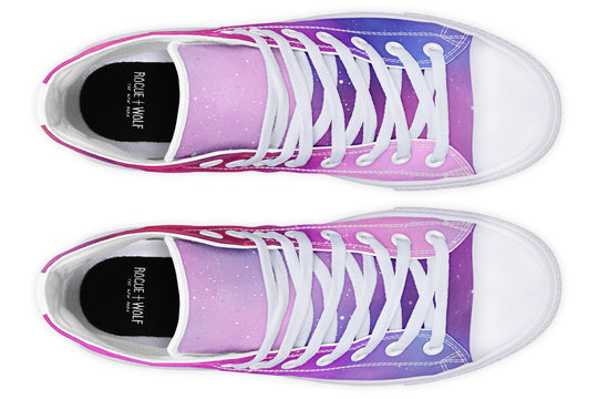 Catch the sky in your dreams with these enchanting high tops. Soft pastel pinks and purples meld into an ethereal spectacle dotted with stars and constellations. Perfect for starry-eyed members of The Coven who dare to walk among the celestial bodies.