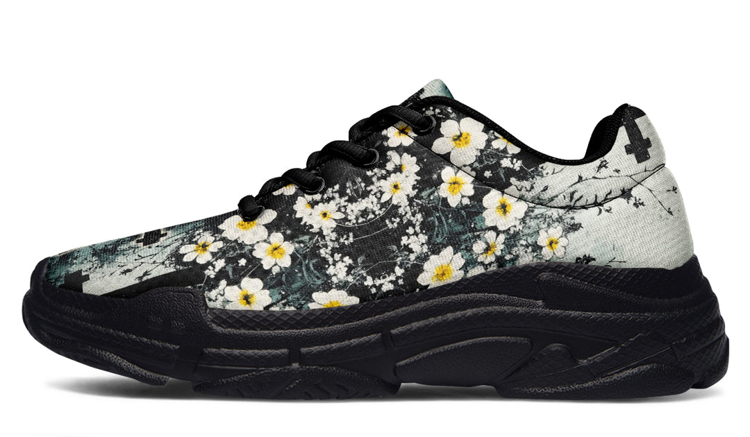 Step into a realm where mourning meets magic with the Mourning Petals Chunky Sneakers!
