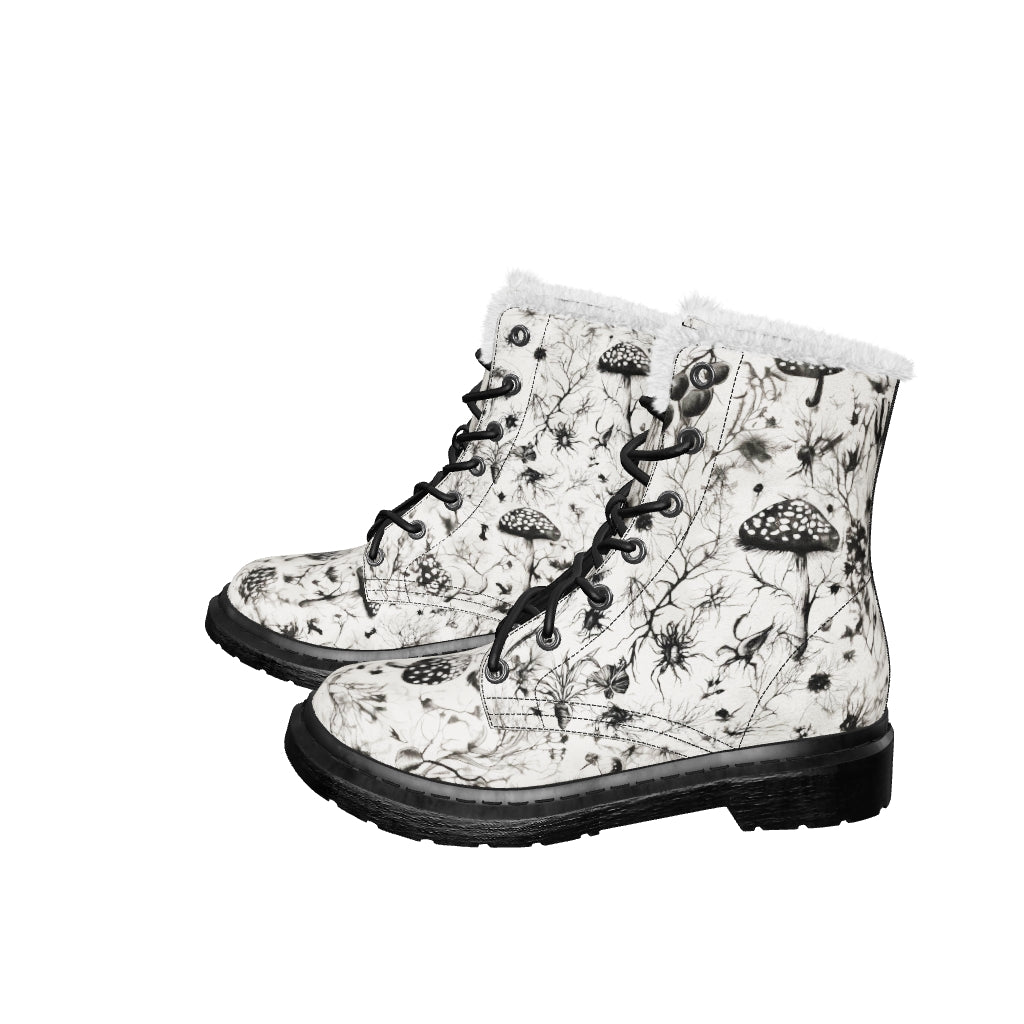 Spindly fungi twist among tangled roots, insects skitter, and the air pulses with witchy stillness—each boot a haunted snapshot of the darkest woodland floor. Perfect for summoning style that’s delightfully wicked, because why walk when you could wander the cryptic unknown?