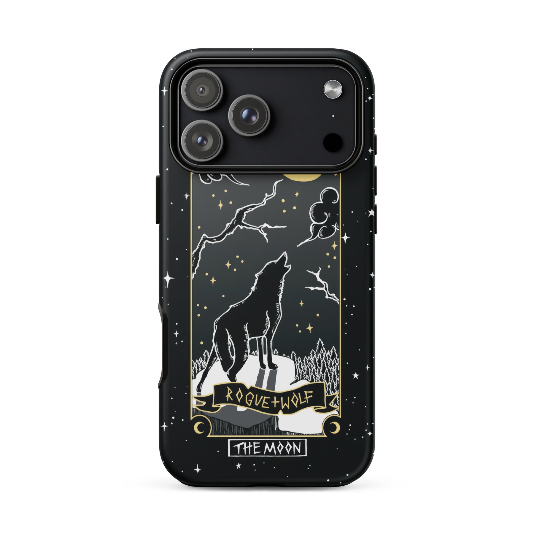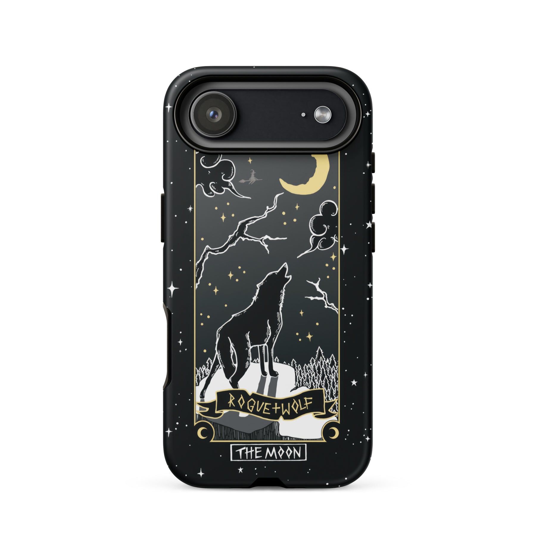 Dive deep into the magical realms with the Moon Tarot Tough Phone Case for iPhone. A bewitching guardian of your device, it weaves the mysteries of the moon and the wilderness of the wolf into every day. Let the moonlight be your guide and the wolf's spirit embolden each step, as your device wears its magic like a cloak.