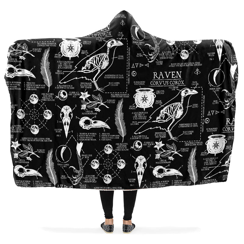 Embrace the Mystique of the Raven with the Raven Study Hooded Blanket!